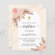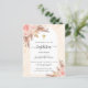 An arch frame and rose gold marble print as background. Decorated with rose gold and pink florals, roses and pampas grass. Personalize and add a name and details.