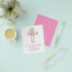 Budget Pastel Pink, Orange and Purple Spring Floral Flowers Cross Botanical Watercolor Christian Religious Baptism Invitations.