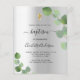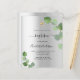 A modern, elegant baptism invitation, gender neutral. Faux silver metallic looking background decorated with eucalyptus greenery, sprigs. Personalize and add a name and details. Black colored letters.