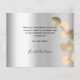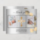 Add 2 or 3 of Your photos, vertical size, a date, name, and the thank you note. A faux silver looking background with black text and frame, a golden eucalyptus sprig. The text: Thank you on the front and your name on the back are written with a stylish hand lettered script with swashes.