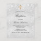 A modern, elegant and minimalist baptism invitation for both boys or girls. Faux silver metallic looking background decorated with faux glitter dust. Personalize and add a name and details. Black colored letters.