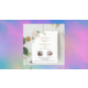 For the baptism of 2 children. A white background decorated with eucalyptus greenery and golden leaves and a white flower. Personalize and the children's names, photos and ceremony details. Black and golden colored letters.