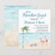 Budget Beach Ocean Surf Adventure Baby Shower Invitations. Watercolor beach ocean scene with "Let the Adventure Begin", couples baby shower design. Perfect for the couple that loves the beach, ocean and adventure and can't wait to take on their greatest adventure, having their baby! The design is a blue themed watercolor with pretty sand beach, ocean surf, flamingos, palm tree and flip flops.