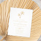 This budget coastal wedding invitation is a smaller size printed on cheaper paper, without an envelope. The simple minimal tropical beach wedding invitation features two palm trees at the top, with classic elegant text, in a white and beach sand beige color scheme, with coordinating beige on the back.