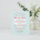 This beach wedding invitation features the words "Sandy Toes & Salty Kisses," "Mr. & Mrs.," and the bride and groom's names in bold coral pink typography over a vintage white illustration of scallop shell on a subtle aqua blue background.