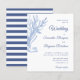 Create budget wedding invitations for coastal beach events with stylish blue and white design that is decorated with watercolor seaweed painting and modern typography, and the striped pattern on the backside. It's also a perfect idea for the under the sea theme wedding. The template helps to personalize it with ease - type your names, location, and place.