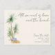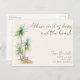 Watercolor palm tree with beach bag design save the date postcards for your destination beach wedding in our "All we need is love and the beach" design. Customize with your wedding details on the front and the back.