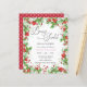 This is a budget friendly strawberry themed bridal shower invitation featuring a frame of watercolor strawberries, white flowers and greenery.