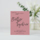 Better Together Dusty Rose Save The Date. A budget price SMALLER 4.5” x 5.6” alternative. Available in a SEMI GLOSS 110 lb CARD STOCK which is the default option (recommended for invitations), OR a SATIN FINISH 80 lb THINNER PAPER STOCK (ideal for enclosures). Envelopes are an optional extra and are slightly larger than the card size. Change to any color of your choice. A modern informal design to ask your guests to save your wedding date with a handwriting style black set script for Better Together in the center to coordinate with the "and" in the same set script between your names. The rest of the text can be easily personalised. Text and background colors can be changed to a different colors if you wish via the customise further option.