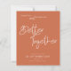 A value for money BUDGET alternative on a smaller size 4.5 x 5.6” semi-gloss 110lbs weight, which is of similar thickness to a postcard (however is not suitable to use as a postcard.). PLEASE NOTE there is ONE invite per sheet. Budget Better Together Terracotta Save The Date . A modern design to invite your guests to save your wedding date with a handwritten informal style cream set script for Better Together in the center to coordinate with the "and" in the same set script between your names on a terracotta colored background. The rest of the text can be easily personalised. A cream background is on the back. Text and background colors can be changed to a different colors if you wish via the customise further option.