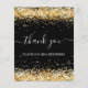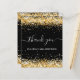 A thank you card for a 50th (or any age) birthday. A black background color, decorated with faux gold glitter. On front large hand lettered script and the text: Thank You, your text.