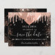 A girly and trendy Save the Date card for a 18th (or any age) birthday party. A black background decorated with rose gold faux glitter drips, sparkles, and balloons. Personalize and add a date and name/age. The text: Save the Date is written with a large trendy hand lettered style script.