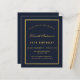 A dark blue background, a decorated with a faux gold frame. Personalize and add a name and party details. The name is written with an elegant hand lettered style script.