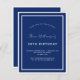 A modern, elegant and invitation. A navy blue background decorated with white frames. Personalize and add a name and details. White text.