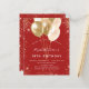 For an elegant 18th (or any age) birthday party. A trendy red background. Decorated with gold glitter, sparkles and balloons. Personalize and add a name, age and party details. The name is written with a hand lettered style script