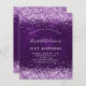A modern, stylish and glamorous invitation for a 21st (or any age) birthday party. A deep purple colored background with pink faux glitter dust. The purple color is uneven. The name is written with a modern hand lettered style script. Personalize and add your party details.