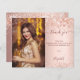 On front: Add a vertical size photo. An elegant rose gold, blush gradient background color, decorated with faux glitter dust. Personalize and add a name and your thank you note.