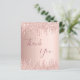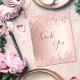 A thank you card for a 50th (or any age) birthday. A rose gold, pink faux metallic looking background color. With sparkling faux glitter drips. On front large dark rose gold colored hand lettered script and the text: Thank You.