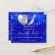 A trendy royal blue background decorated with royal blue drips, confetti, and balloons. Personalize and add a date and name/age. The text: Save the Date is written with a large trendy hand lettered style script.