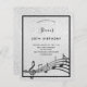 A trendy, modern 50th birthday party invitation card. A rustic faux silver metallic looking background, with a black frame and music notes, black colored letters. Personalize and add a name and party information.