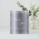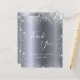 A thank you card for a 50th (or any age) birthday. A faux silver metallic looking background color. With faux glitter dust. On front, a large hand lettered script and the text: Thank You, your text, title and a date.