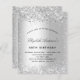 For an elegant 40th (or any age) birthday party. A faux silver metallic looking background. Decorated with faux glitter. Personalize and add a name and party details. The name is written with a hand lettered style script
