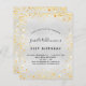 For an elegant 21st (or any age) birthday. A faux silver metallic looking background. Decorated with faux gold glitter dust. Personalize and add a name, age and party details. The name is written with a hand lettered style script