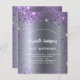 A modern, stylish and glamorous invitation for a 21st (or any age) birthday party. A dark faux silver metallic looking background with purple faux glitter, sparkles. The name is written with a modern hand lettered style script. Personalize and add your party details.