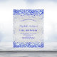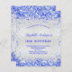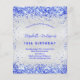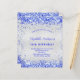 For an elegant 18th (or any age) birthday party. A silver faux metallic looking background. Decorated with royal blue faux glitter. Personalize and add a name and party details. The name is written with a hand lettered style script