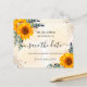 A trendy Save the Date for a 40th (or any age) birthday party. A stylish white background decorated with eucalyptus greenery, sunflowers, golden foliage and faux gold glitter dust. Personalize and add a date, name and text. The text: Save the Date is written with a large trendy hand lettered style script with swashes.