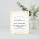 For an elegant 21st (or any age) birthday. A stylish white background. Decorated with faux gold glitter dust. Personalize and add a name, age and party details. The name is written with a hand lettered style script