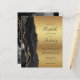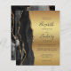 The left-hand edge of this elegant modern wedding invitation features a black watercolor agate border trimmed with faux gold glitter. The customizable text combines slate black handwriting, copperplate and italic fonts on a gold faux foil background. The reverse side features a matching black and gold agate design.
