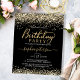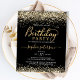 Budget Modern Stylish Black and Gold Glitter Birthday Invitation. This cheap elegant any age feminine girly adult birthday invitation template featuring a trendy hand lettered swash tail font calligraphy gold glitter borders on black background. Perfect for any age (16th, 18th, 21st, 30th, 40th, 50th, 60th 70th and sixteen, eighteen, twenty one, thirty, forty, fifty, sixty or seventy etc….) Black and Gold Birthday Party. If you need help or matching item, please contact to me.