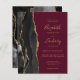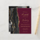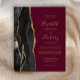 The left-hand edge of this elegant modern wedding invitation features a black watercolor agate border trimmed with faux gold glitter. The customizable text combines gold-colored handwriting, copperplate and italic fonts on a burgundy background. The reverse side features a matching black and gold agate design. NOTE: Envelopes are not automatically included with these budget invitations, so please remember to choose the "white envelopes" option!