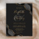 A black watercolor agate design trimmed with faux gold glitter appears in two corners of this elegant design. Personalize it with the couple's names in gold-colored handwriting script over a large gray ampersand. Add the wedding details in gold-colored copperplate and italic fonts on an off-black background. The reverse side features a matching black and gold agate design. NOTE: Envelopes are not automatically included with these budget invitations, so please remember to choose the "white envelopes" option!