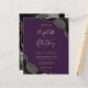 A black watercolor agate design trimmed with faux gold glitter appears in two corners of this elegant design. Personalize it with the couple's names in gold-colored handwriting script over a large purple ampersand. Add the wedding details in gold-colored copperplate and italic fonts on a purple background. The reverse side features a matching black and gold agate design. NOTE: Envelopes are not automatically included with these budget invitations, so please remember to choose the "white envelopes" option!