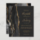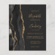 The left-hand edge of this elegant modern wedding invitation features a black watercolor agate border trimmed with faux gold glitter. The customizable text combines gold colored handwriting, copperplate and italic fonts on an off-black background. The reverse side features a matching black and gold agate design.