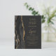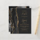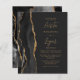 The left-hand edge of this elegant modern wedding invitation features a black watercolor agate border trimmed with faux gold glitter. The customizable text combines gold-colored script and sans serif fonts on a slate black background. The reverse side features a matching black and gold agate design.