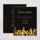 An elegant and minimalist moving annoucement card from a city life. Black and faux gold with a city skyline. Personalize and add your new address and message to your family and friends.