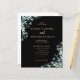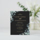 Modern Wedding Invitation: Rustic Foliage and Tiny Blue Flowers on Black Background with Faux Gold Lettering. Perfect for Customising with Your Unique Information. Ideal for Couples Seeking Elegant and Personalised Wedding Invitations. Enhance Your Wedding Experience with Our Stylish and Customizable Invitations.