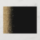 This elegant budget save the date card features a border of gold faux glitter along the left edge. The customizable text combines gold-colored whimsical handwriting script, copperplate and italic fonts on a black background. The reverse side features a matching black and gold glitter design.