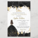 Budget Elegant Black Gold Floral Princess Quinceañera Quince Invitation