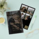 Elegant simple minimalist romantic budget affordable all in one RSVP and guest details black wedding invitation paper flyer template featuring a classy stylish chic trendy faux gold handwritten calligraphy script, a scanning QR CODE (automatically generated with your website link), one transparent photo overall and 4 photo collage. ++++++++++++ Easy to personalize with your engagement pictures and details on both sides! The invitation is suitable for spring summer autumn fall and winter modern trendy stylish weddings. +++++++++++++++++ PLEASE READ THIS BEFORE PURCHASING! This is a low budget affordable wedding invitation printed on a FLYER (advertising type paper). ++++ Please note that BUDGET PAPER IS THIN - You can upgrade to have this card printed on cardstock ++++ ENVELOPES NOT INCLUDED.