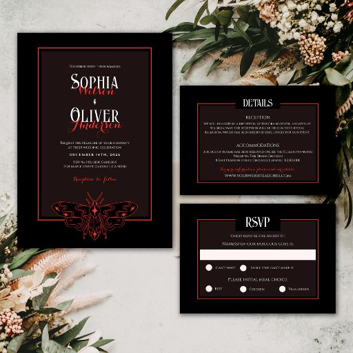 Budget Black&Red Gothic QR code Wedding Invite