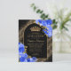 Modern Classic Elegant Glam Black Royal Blue Gold Glitter Sparkle Floral 15th Birthday Quinceanera Invitation