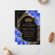 Modern Classic Elegant Glam Black Royal Blue Gold Glitter Sparkle Floral 15th Birthday Quinceanera Invitation