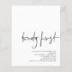 Budget Black Script White 21st Birthday Invite. A budget price SMALLER 4.5” x 5.6” alternative. Available in a SEMI-GLOSS 110 lb CARD STOCK which is the default option (thicker for invitations), OR a SATIN FINISH 80 lb THINNER PAPER STOCK (ideal for enclosures). Modern minimalism with Twenty First in set modern handwriting style. Easily personalise the rest of the text to your own.