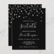 This modern design features faux silver triangular confetti on a black background. The word "sixtieth" appears in elegant light gray handwriting font. Personalize the invitation with the name of the guest of honor in light gray handwriting font, along with the date, venue, and other details in light gray sans serif type.