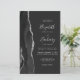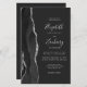The left-hand edge of this elegant modern wedding invitation features a black watercolor agate border trimmed with faux silver glitter. The customizable text combines handwriting, copperplate and italic fonts in light silver gray on an off-black background. Add additional details on the back, along with a QR code to help your guests visit your wedding website.
