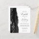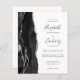 The left-hand edge of this elegant modern wedding invitation features a black watercolor agate border trimmed with faux silver glitter. The customizable text combines handwriting, copperplate and italic fonts in charcoal gray on a white background. The reverse side provides space for wedding details, along with a QR code guests can scan to visit your website and RSVP, which saves the cost of printing and mailing separate RSVP cards.